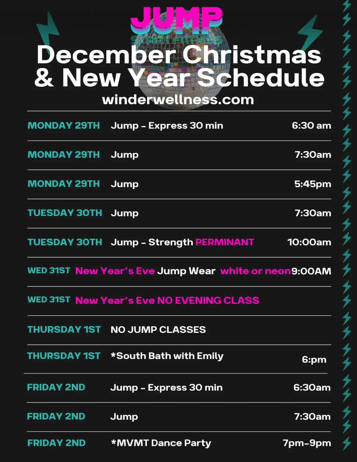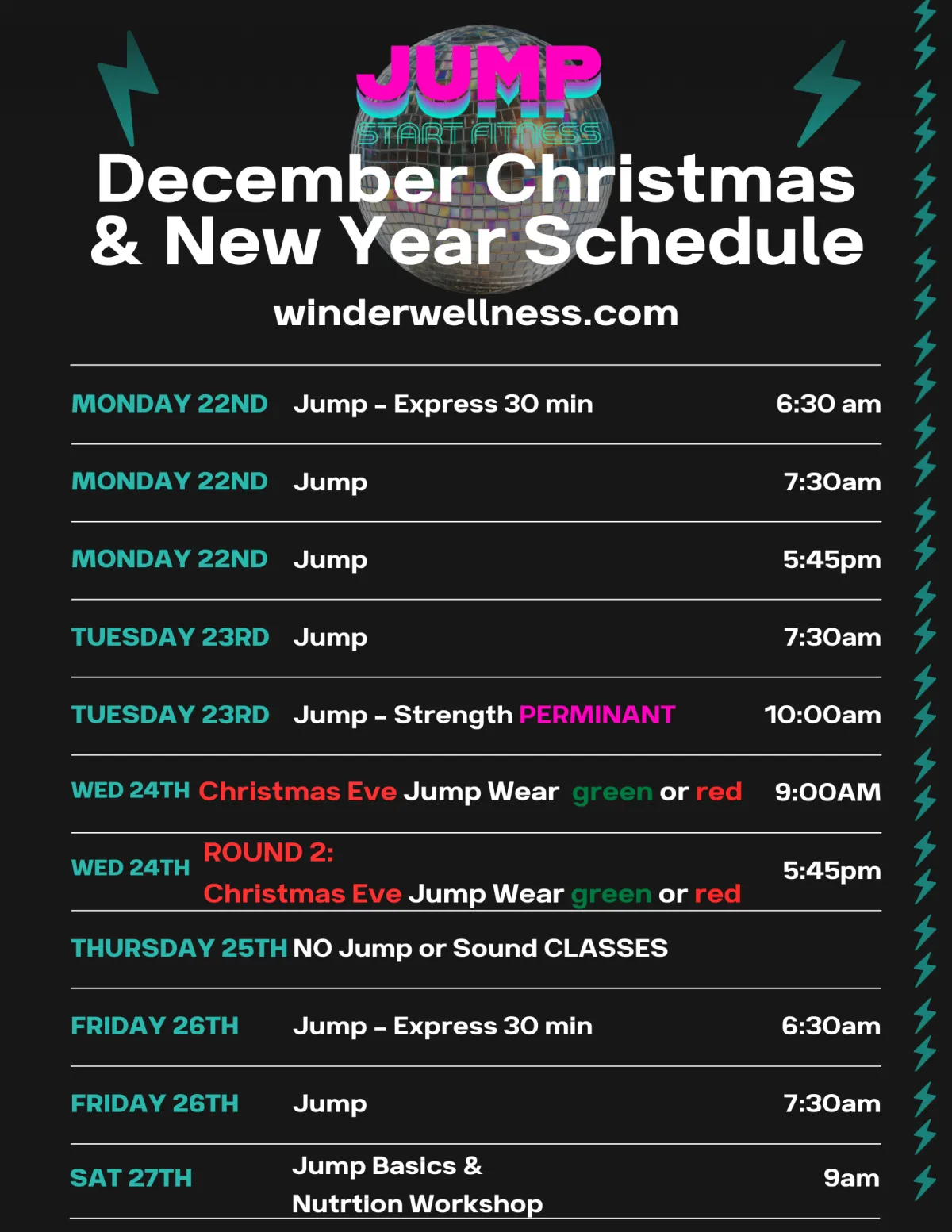 Christmas & New Years Schedule & Events